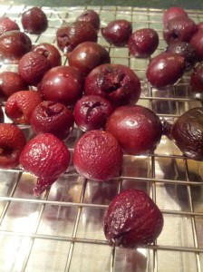 - Now turn the burner as low as possible and set your cherries on the other side of your grill (so they are not directly on top of a heat source). I find that putting them on a wire rack and putting the rack on top of your grill grate ensures the cherries stay safe and are easy to remove from the grill.