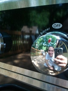 My grill has four burners, spaced evenly left to right. As you can see from the above picture the very front and very back of the grill tend to be cool spots. The very center of the grill is definitely the hottest, which makes scientific sense since it’s the closest point to all four burners. Most interesting to me, though, is the fact that the left quadrant of this photo (which is actually the right side of my grill because the map ends up being a flipped image of your grill surface-see bullet 3 below) is darker than the right. This seems to indicate one side of my grill is hotter than the other. I suppose it could also mean that I left the bread on that side longer (see bullet 2 below), but I’ve always had a hunch that the right side of my grill (which is the left side of this image) burns hotter. This may very well be because of the way the natural gas is fed into the grill (from the right hand side), though it’s more likely that the right-most burner is calibrated to burn a little hotter. (I happen to know from looking at the schematic of the burners, that inside each control dial there are tiny screws that Sears uses to calibrate how hot the burners are supposed to burn.)